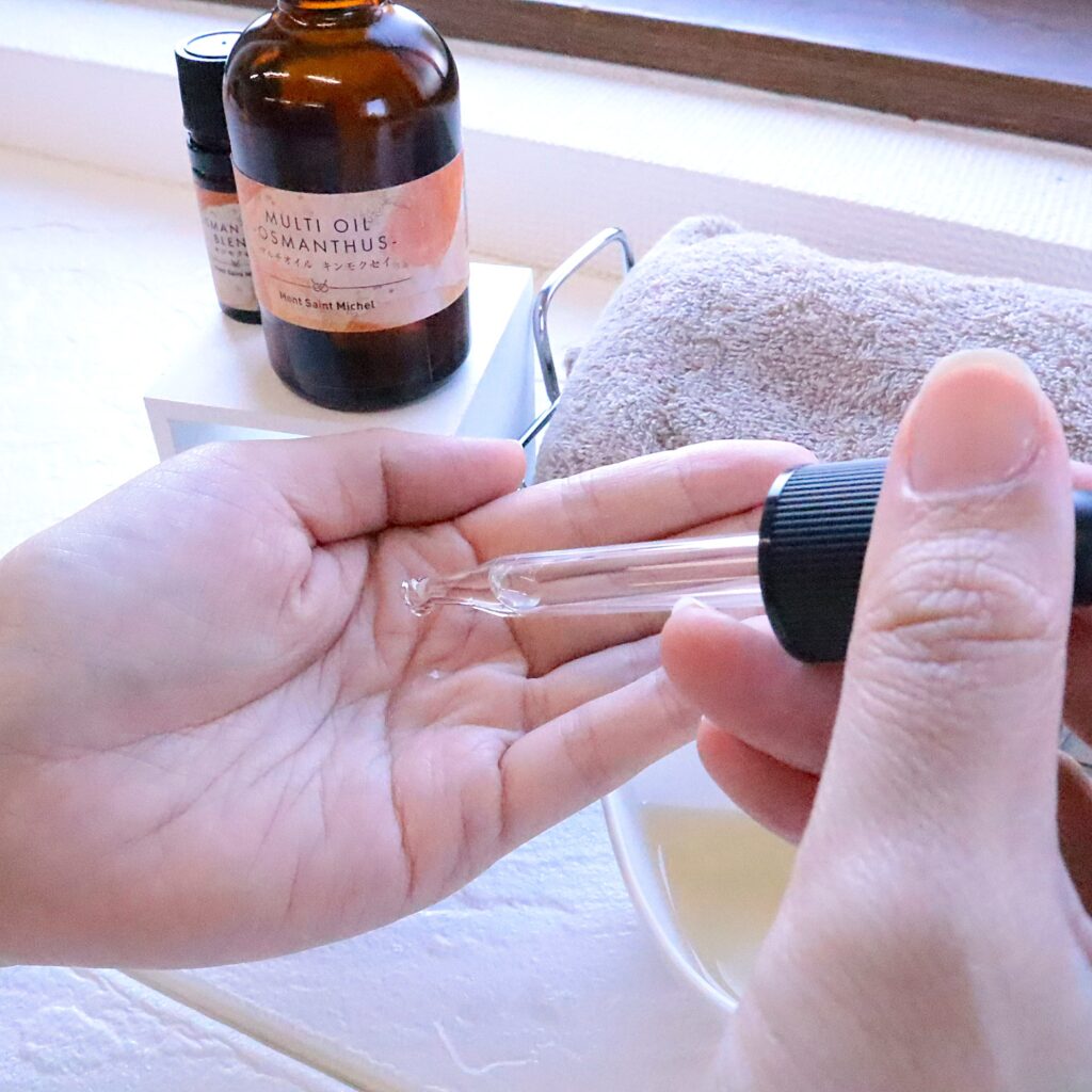 また、浸透力が高いので、化粧水前のブースターにおすすめです。化粧水の前に1~2滴のオイルを手の