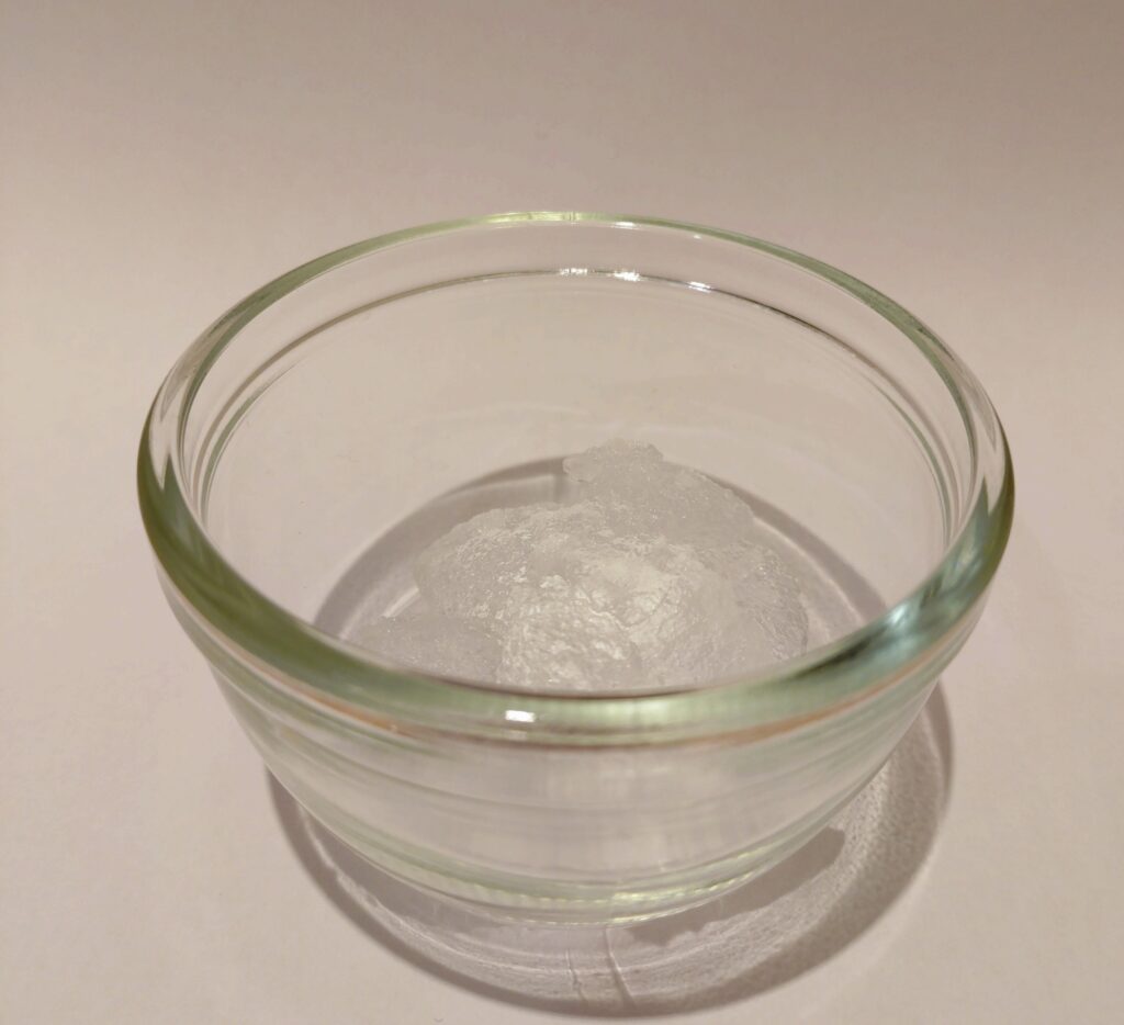 ①容器に、常温に戻した保冷材の中身を入れます。